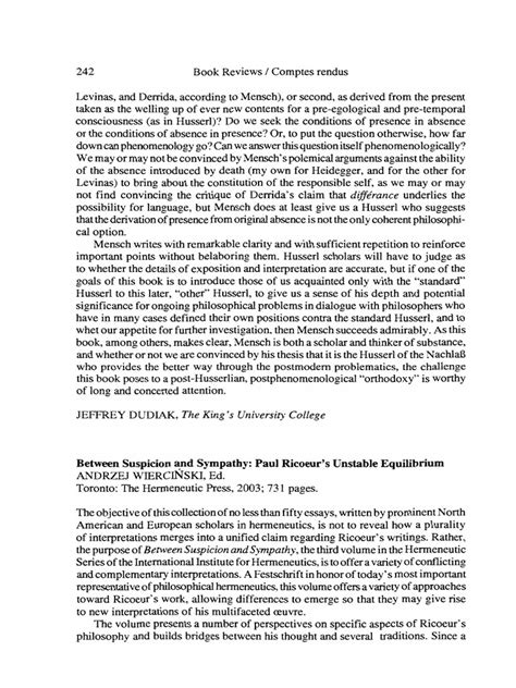 [UniqueID] - Read Online Between Suspicion and Sympathy; Paul Ricoeurs Unstable Equilibrium Doc